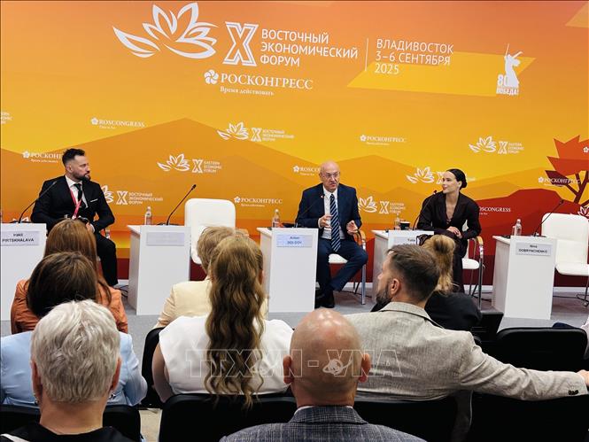Các phiên thảo luận chuyên đề trong khuôn khổ Diễn đàn Kinh tế phương Đông lần thứ 10. Ảnh: Tâm Hằng/TTXVN