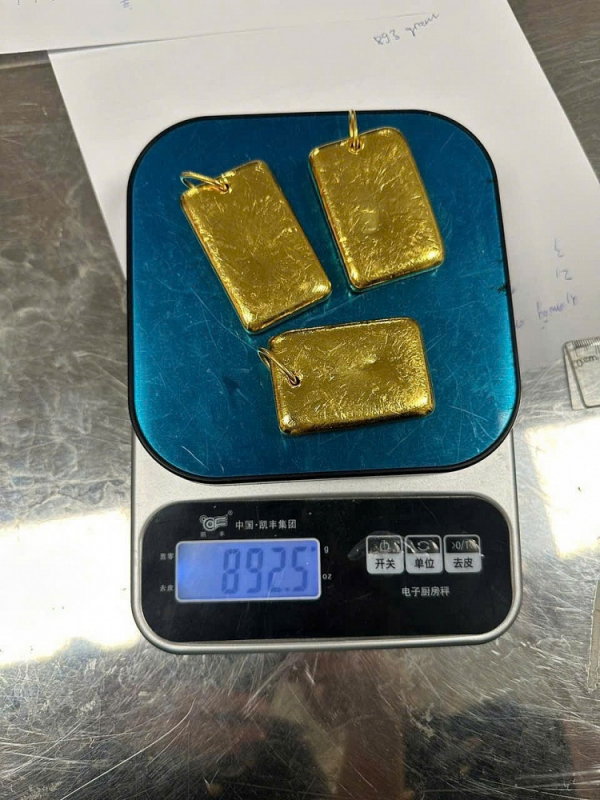 Hải quan cửa khẩu sân bay quốc tế Nội Bài phát hiện hành khách mang 3 miếng kim loại nghi là vàng miếng.