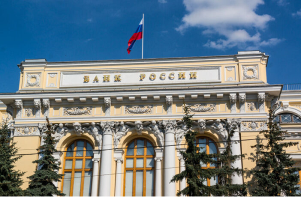 Tòa nhà Ngân hàng Trung ương Nga với quốc kỳ Nga tung bay trên nóc. Ảnh: Embassy Life