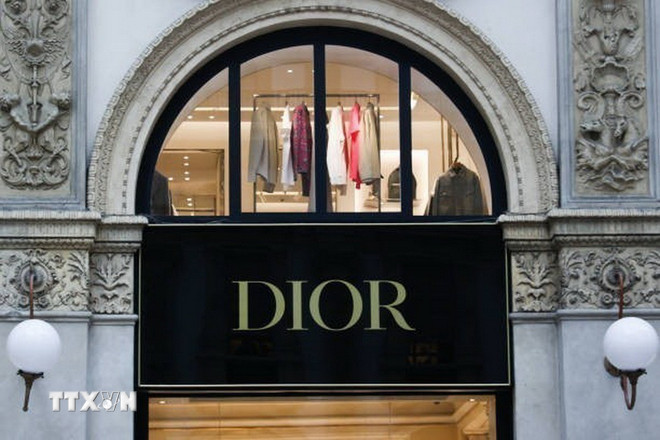 Biểu tượng hãng thời trang Dior tại cửa hàng ở Milan, Italy. (Ảnh: Getty Images/ TTXVN)