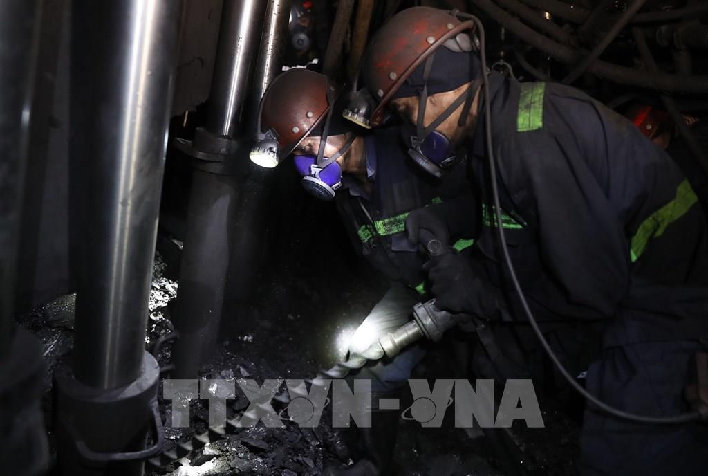 Không khí lao động khẩn trương trong hầm lò của công ty than Nam Mẫu. Ảnh: Quốc Khánh - TTXVN
