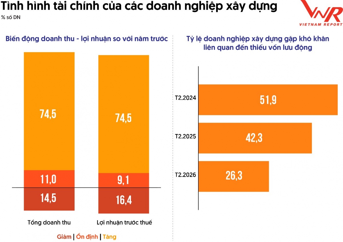 Nguồn: Vietnam Report, Khảo sát doanh nghiệp xây dựng, tháng 2/2026