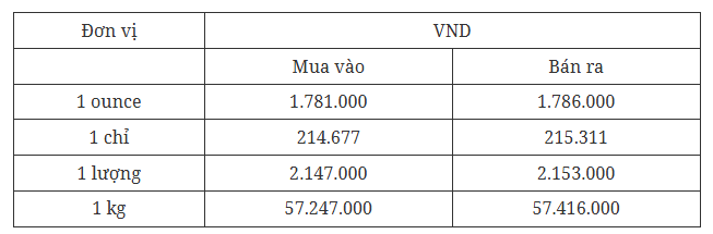Giá bạc thế giới quay đầu giảm, hiện ở mức giá 1.781.000 đồng/ounce (mua vào) và 1.786.000 đồng/ounce (bán ra).