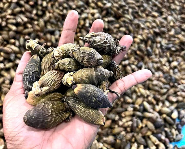 Cau chủ yếu được thu mua, sơ chế rồi nhập cho các lò. Từ đó, họ hấp, sấy khô và bán lại cho các thương lái để xuất sang Trung Quốc. Ảnh P.T.