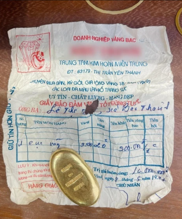 Theo tiệm vàng N.T. (Yên Thành, Nghệ An), khách hàng này đã mua vàng từ năm 1997 với giá chỉ 500.000 đồng/chỉ. Khi mang vàng đến bán vào sáng 19/3, bà còn trình hóa đơn mua hàng từ thời điểm đó.