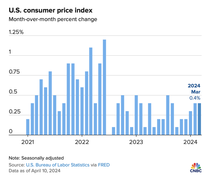 Chỉ số giá tiêu dùng (CPI) của Mỹ tăng trong tháng 3