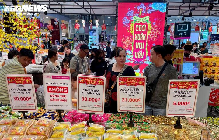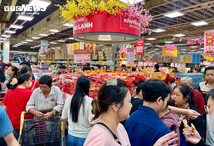Cuối tuần, dòng người đổ về siêu thị tại TP.HCM ngày một đông, nhiều thời điểm bãi giữ xe quá tải, quầy thanh toán thường xuyên trong tình trạng xếp hàng dài. Theo ghi nhận của PV Báo Điện tử VTC News, sức mua đang “nóng” lên từng ngày khi Tết đã cận kề.
