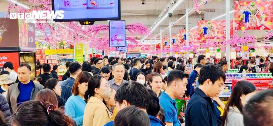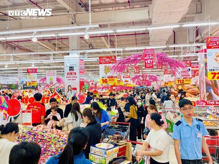 Không khí mua sắm nhộn nhịp tại siêu thị khi Tết Nguyên đán đã cận kề.