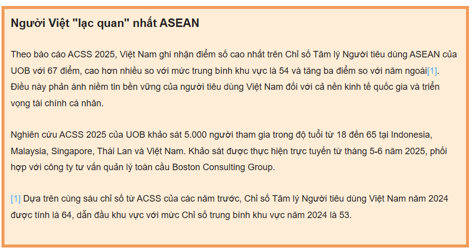 Theo báo cáo Nghiên cứu Tâm lý Người tiêu dùng ASEAN (ACSS) năm 2025 do UOB công bố hôm 20-11, vấn đề lo ngại lớn nhất của người tiêu dùng Việt Nam trong năm nay là biến đổi khí hậu, thiên tai và ô nhiễm (66% người tham gia khảo sát ). Tiếp theo là vấn đề thuế quan của Mỹ (59%).
