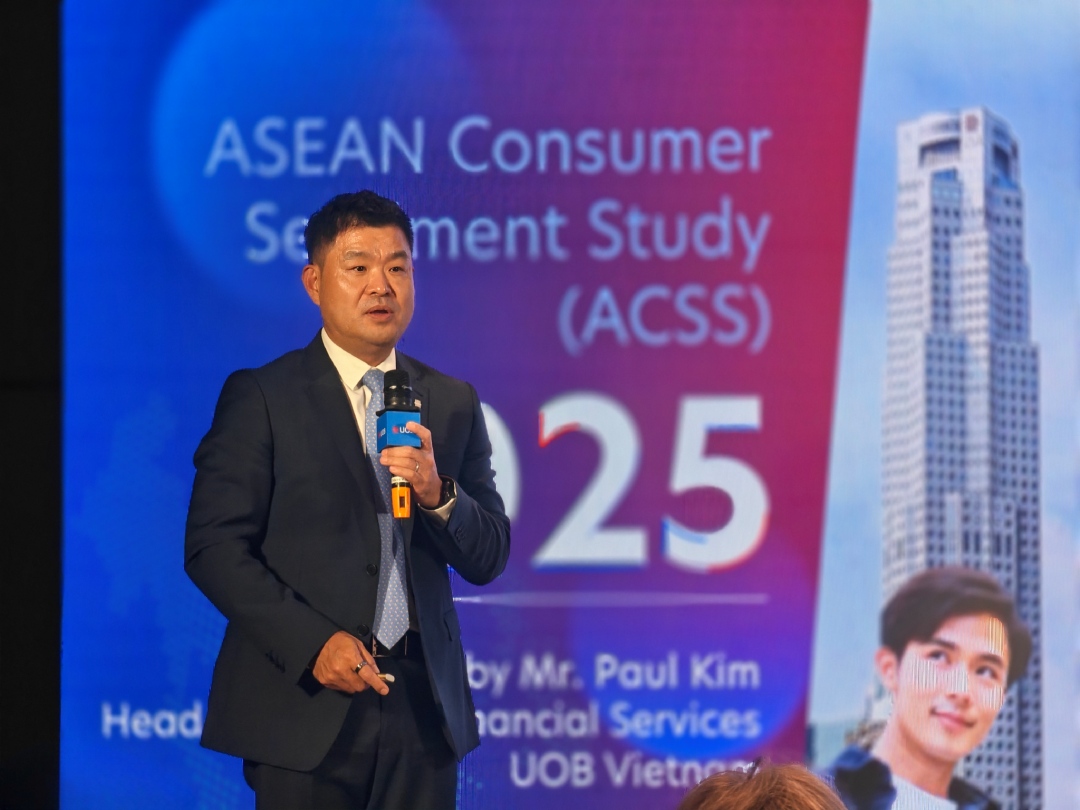 Ông Paul Kim, Giám đốc Khối Dịch vụ Tài chính Cá nhân, Ngân hàng UOB Việt Nam chia sẻ báo cáo ACCS 2025. Ảnh: V.D.