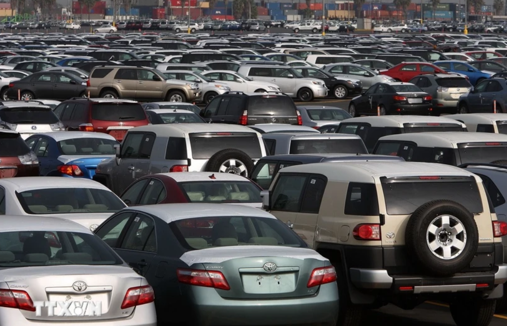 Ôtô nhập khẩu được vận chuyển tại cảng Long Beach, California (Mỹ). (Ảnh: Getty Images/TTXVN)