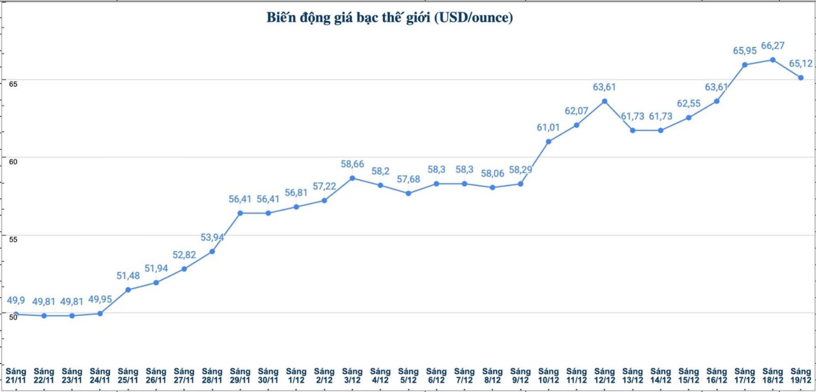 Diễn biến giá bạc thế giới những phiên gần đây. Biểu đồ: Phương Anh