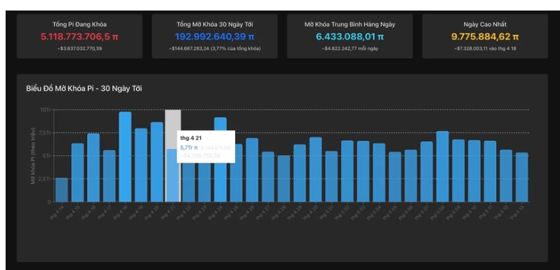 Thực tế, chỉ một phần nhỏ trong 6,68 tỷ coin đã khai thác có thể buôn bán. Theo Piscan, mỗi ngày có khoảng 6-8 triệu Pi được mở khóa. Đây là số mà người đào chủ động đóng băng trước đây để tăng tốc độ khai thác. Chính lượng coin này tạo ra áp lực bán, khiến giá Pi liên tục giảm. Với hình thức khai thác miễn phí chỉ bằng cách điểm danh, những người sở hữu Pi sẵn sàng xả hàng mà không chịu áp lực lỗ vốn.