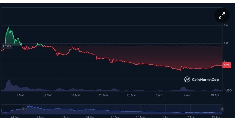 Ngày 14/4, Pi được giao dịch quanh mốc 0,75 USD/đồng, tăng gần gấp đôi so với đáy 0,4 USD vào tuần trước. Tuy nhiên, nó đã chia 3 từ đỉnh 2,9 USD hồi cuối tháng 2.