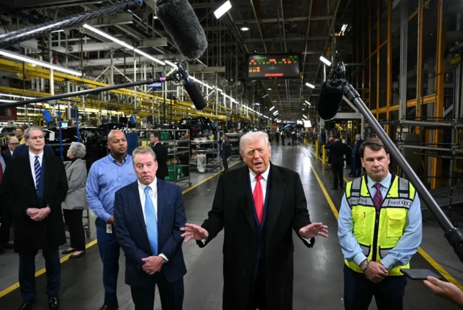 Ông Trump phát biểu trong chuyến thăm nhà máy sản xuất của hãng xe Ford - Ảnh: AFP
