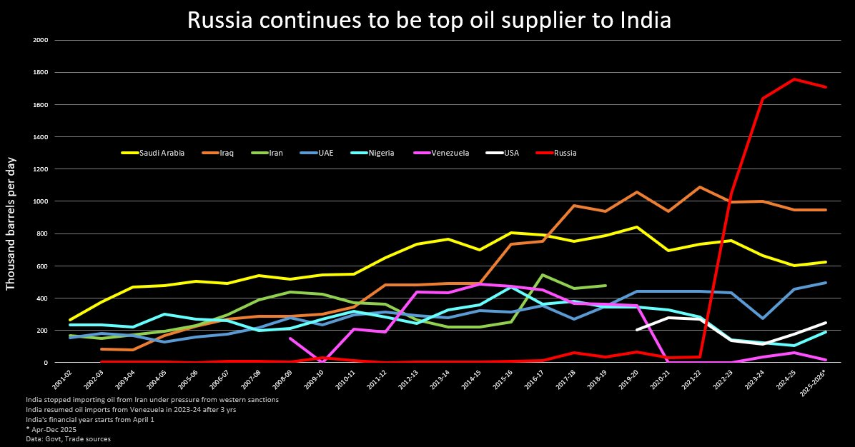 Nhìn rộng hơn vào bức tranh toàn cảnh của năm 2025, xu hướng phục hồi của OPEC tại thị trường Ấn Độ vẫn rất rõ nét. Thị phần dầu thô nhập khẩu từ các quốc gia OPEC đã tăng nhẹ lên mức 50% trong năm 2025, so với con số 49% của năm 2024. Cùng thời điểm đó, thị phần của Nga đã giảm xuống còn 33,3% so với mức 36% của năm trước.
