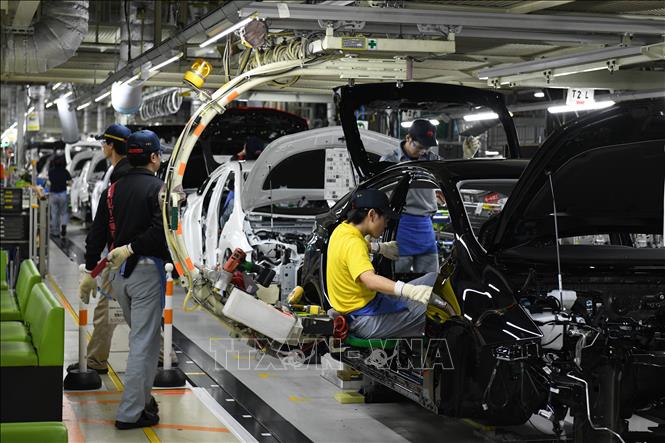 Công nhân làm việc tại nhà máy sản xuất ô tô ở thành phố Toyota, tỉnh Aichi, Nhật Bản. Ảnh minh họa: AFP/TTXVN