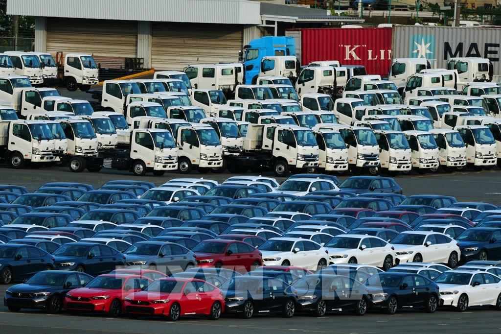 Ô tô chờ xuất khẩu tại cảng ở Yokohama, Nhật Bản. Ảnh: THX/TTXVN