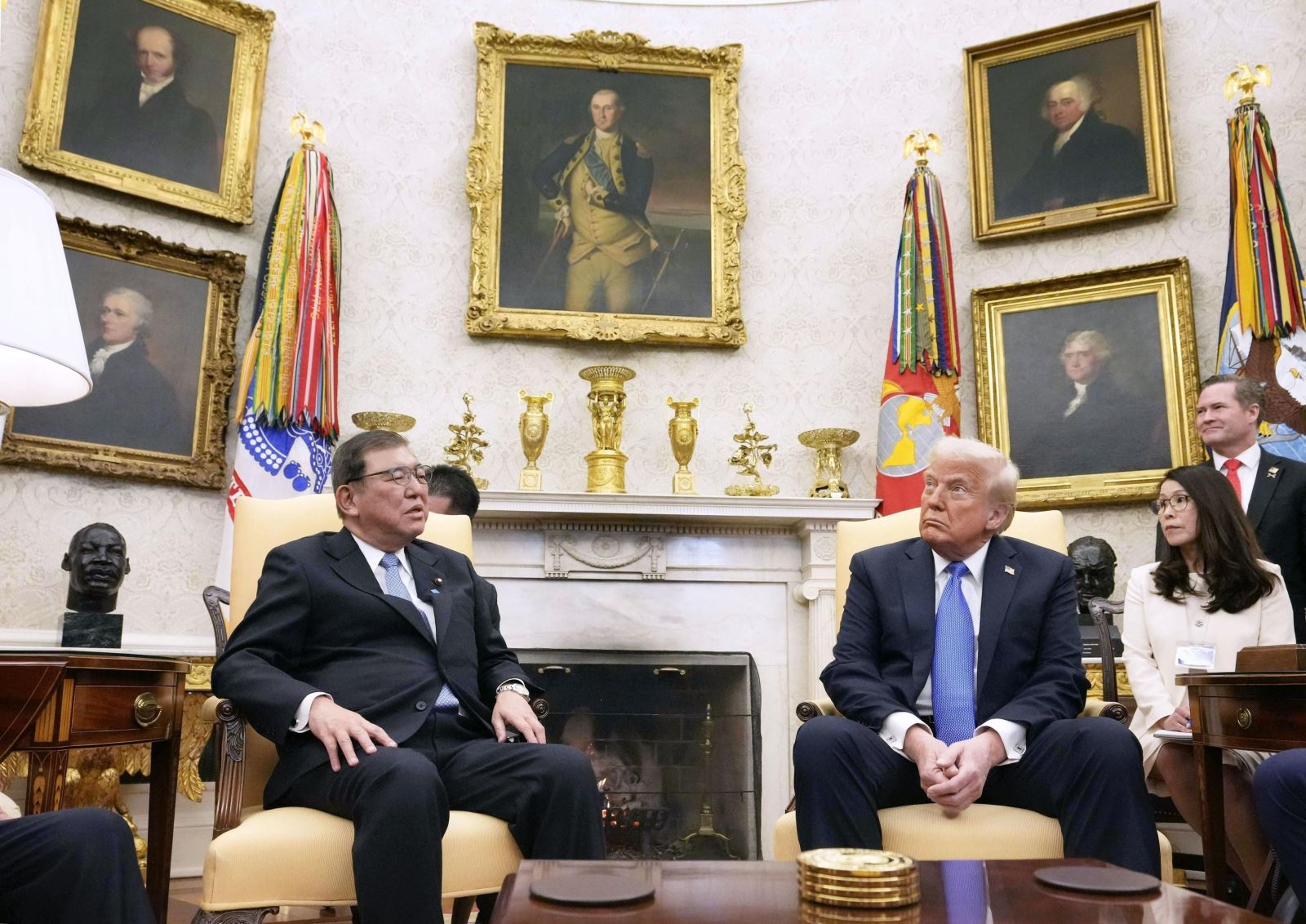 Tổng thống Mỹ Donald Trump (phải) và Thủ tướng Nhật Bản Shigeru Ishiba tại cuộc gặp ở Nhà Trắng, Washington ngày 7/2/2025.