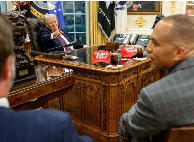 Tổng thống Trump từng xuất hiện bên những chiếc mũ in dòng chữ "Trump 2028". Ảnh: White House.