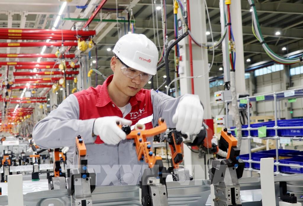 Công nhân nhà máy sản xuất ô tô. Ảnh: Văn Đức - TTXVN