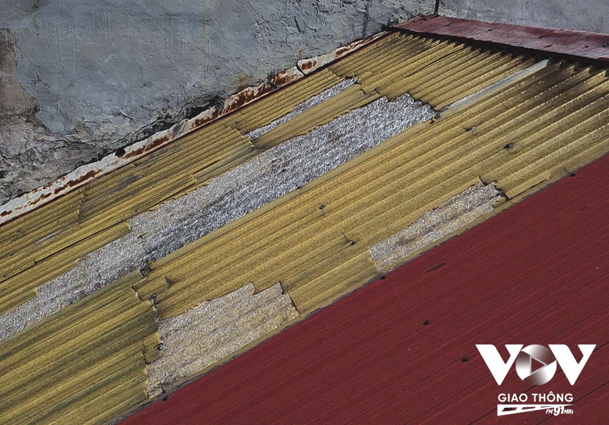 Quá quá trình sửa chữa và thi công lắp đặt mái tôn, Anh Dũng cho biết phần lớn các mái tôn bị hư hại sau bão Yagi là các mái tôn cũ với phần đinh vít bị yếu dễ bị gió mạnh thổi bay.