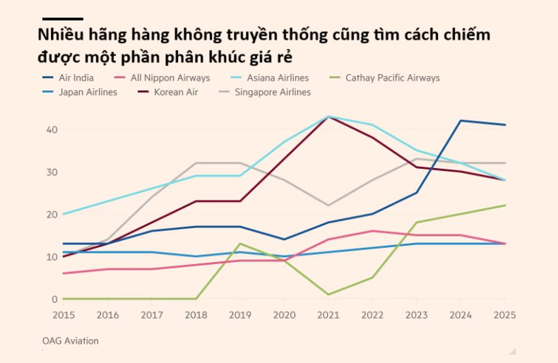 Ngành hàng không giá rẻ châu Á từng bùng nổ mạnh mẽ trong hai thập kỷ đầu thế kỷ 21, nhờ tầng lớp trung lưu mở rộng và nhu cầu du lịch tăng nhanh. Theo công ty tư vấn OAG Aviation, thị phần hành khách đi hãng giá rẻ trong khu vực tăng từ 24% năm 2015 lên 32% năm 2024, đưa châu Á vượt Bắc Mỹ và chỉ đứng sau châu Âu và Mỹ Latin. Tuy nhiên, theo ông Usman, “ngay trước đại dịch Covid-19, thị trường đã đạt đến độ bão hòa”.