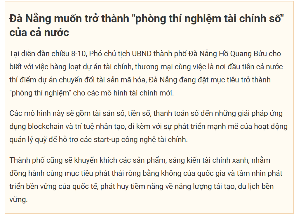 Cũng theo ông Trung, Đà Nẵng đang sở hữu lợi thế thể chế để tiên phong triển khai mô hình thị trường tài sản mã hóa nội địa.