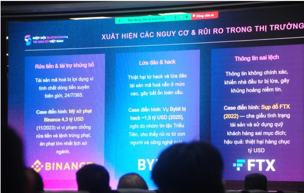 Ông Trung cảnh báo việc phát triển tài sản mã hóa luôn đi liền với tội phạm và các hành vi lừa đảo trên không gian mạng. Việt Nam đang trong nhóm điểm nóng của thế giới, trong đó có tội phạm liên quan đến tài sản số.