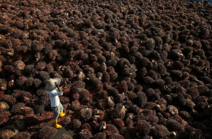 Bãi chứa quả cọ bên trong một cơ sở dầu cọ ở ngoại ô Kuala Lumpur - Ảnh: REUTERS