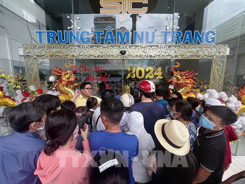Người dân mua vàng miếng tại Công ty Vàng bạc đá quý Sài Gòn (SJC) trên đường Nguyễn Thị Minh Khai (Quận 3, TP Hồ Chí Minh) ngày 5/6/2024.