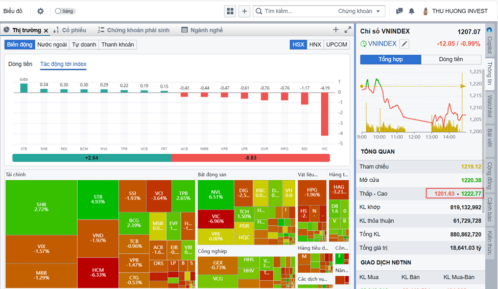 =>Nhận xét: Thị trường vận động khó chịu trong vùng đi ngang ngắn hạn, NĐT dễ gặp phải tình trạng mua đuổi xong thì giá giảm, bán cắt lỗ xong thì lại hồi.