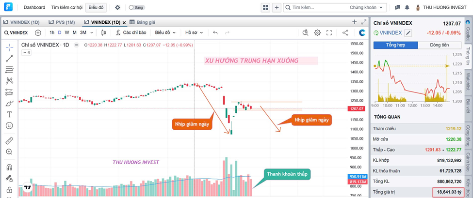Pha trung hạn xuống hiện tai mới có 1 nhịp giảm và 1 nhịp hồi, nên về cấu trúc, đang còn thiếu 1 nhịp giảm ngày nữa.