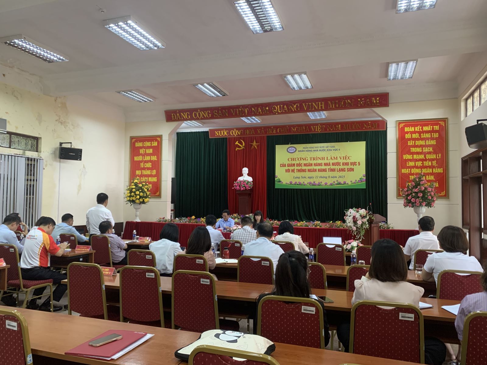 Tại buổi làm việc, Ban Giám đốc NHNN Khu vực 5 cung cấp thông tin chung về tình hình kinh tế - xã hội, hoạt động ngân hàng trên địa bàn khu vực 5 và đánh giá tổng thể về thị trường tiền tệ, ngoại hối, hoạt động ngân hàng trên địa bàn tỉnh Lạng Sơn trong 8 tháng đầu năm 2025, chỉ đạo, định hướng nhiệm vụ những tháng cuối năm 2025. Đại diện Lãnh đạo của 16 chi nhánh Tổ chức tín dụng (TCTD) trên địa bàn tỉnh Lạng Sơn tham gia phát biểu ý kiến, báo cáo cụ thể về tình hình hoạt động của đơn vị, những tồn tại, hạn chế, khó khăn, vướng mắc, đề xuất, kiến nghị và thảo luận về các phương pháp, giải pháp đổi mới hoạt động ngân hàng tại địa phương.
