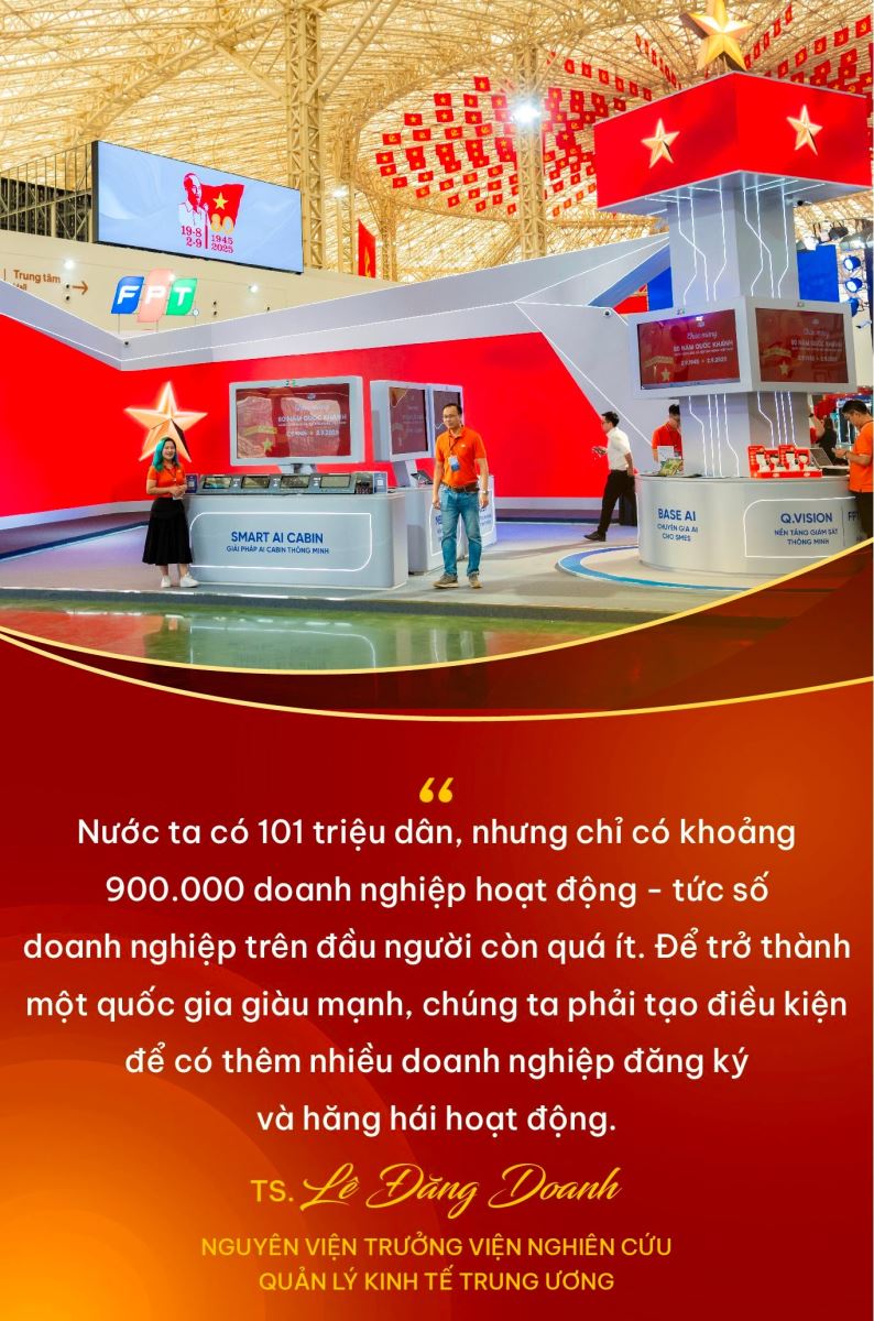 Nghĩ về chặng đường 80 năm, TS. Lê Đăng Doanh đặt câu hỏi: “Một mặt chúng ta tự hào, nhưng mặt khác cũng thấy trách nhiệm rất nặng nề: Làm sao để tiếp tục vươn lên trong bối cảnh hiện tại?”. Theo chuyên gia, nhiệm vụ nằm ở công cuộc Đổi Mới lần hai, với việc phát triển khu vực kinh tế tư nhân thực sự năng động, mạnh mẽ.