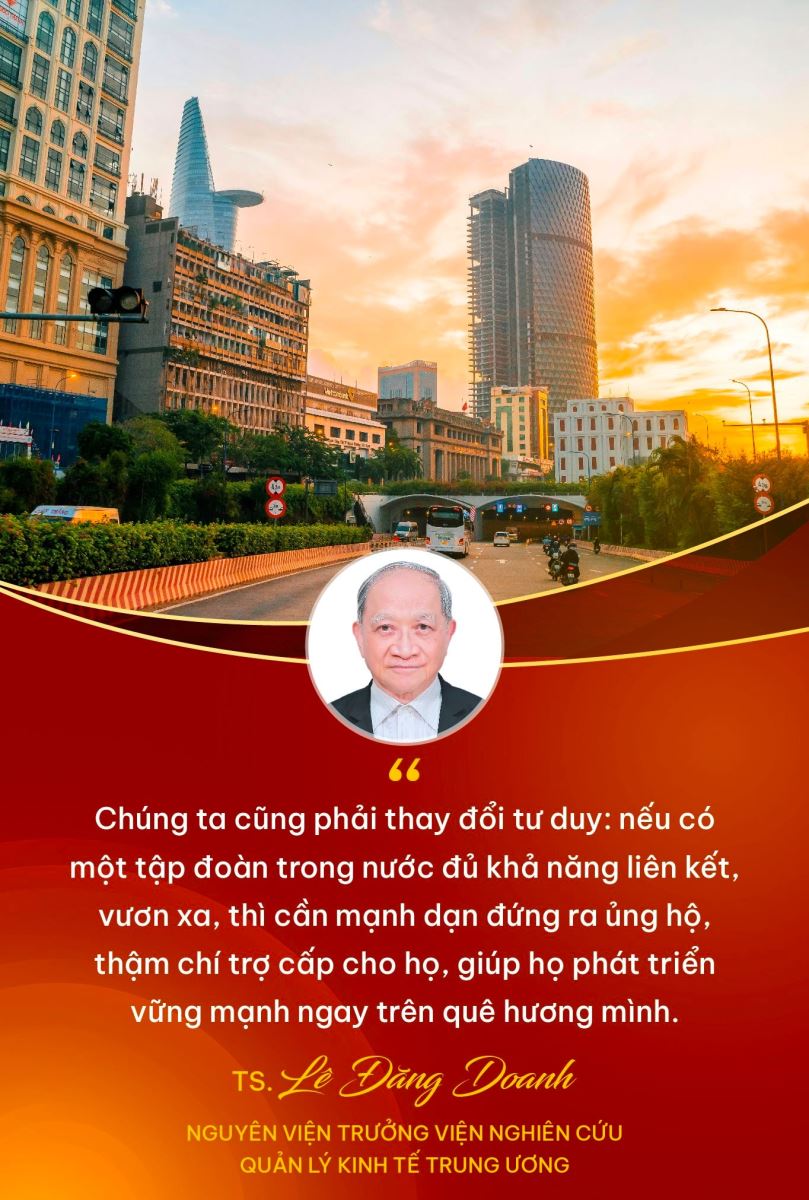 Thứ nhất, tôi thấy rằng tất cả những gì Nhà nước làm cho tư nhân từ trước đến nay vẫn còn dè dặt và khiêm tốn. Đồng thời, chúng ta cũng phải thay đổi tư duy: nếu có một tập đoàn trong nước đủ khả năng liên kết, vươn xa, thì cần mạnh dạn đứng ra ủng hộ, thậm chí trợ cấp cho họ, giúp họ phát triển vững mạnh ngay trên quê hương mình.