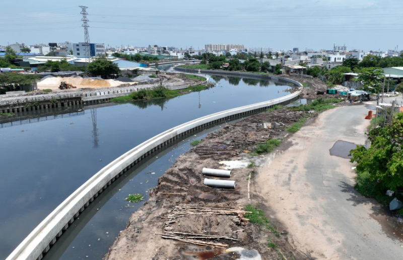 Kênh Tham Lương vẫn ô nhiễm do mới chỉ được kè bờ.
