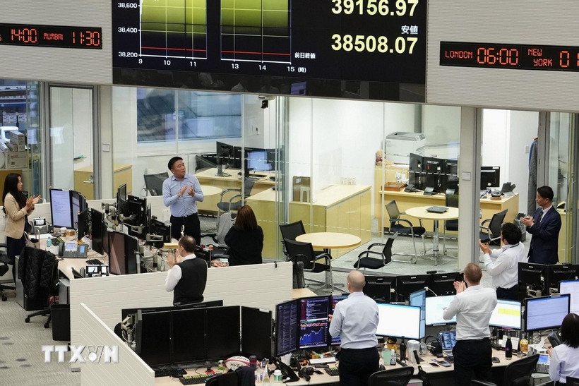 Giao dịch viên tại một công ty chứng khoán ở Tokyo, Nhật Bản. (Ảnh: Kyodo/TTXVN)