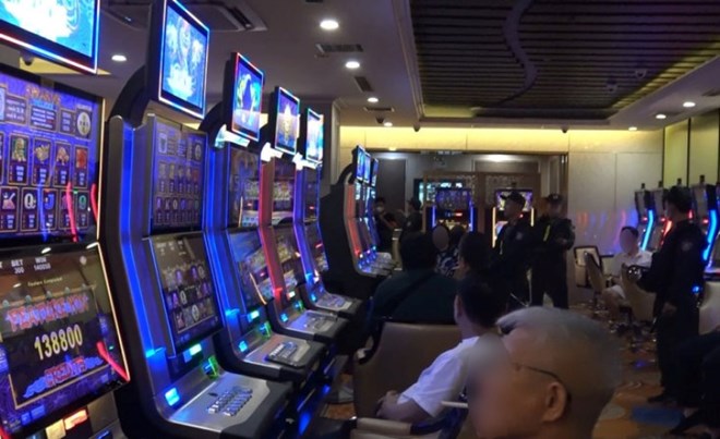 Cả trò đánh bạc với máy Roulette và máy Baccarat, người chơi dùng tiền USD hoặc đổi tiền thành ticket để đưa vào máy...