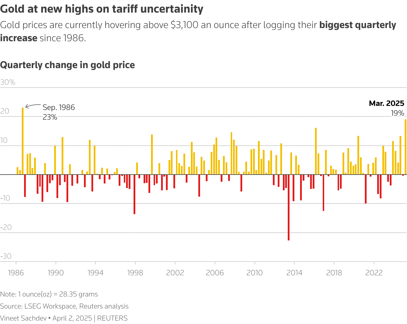 Thông báo về thuế quan mới nhất của Tổng thống Donald Trump đã khiến các nhà đầu tư lo ngại kinh tế Mỹ có thể rơi vào suy thoái, gây ra đợt bán tháo cổ phiếu Mỹ - một trong những đợt bán tháo mạnh mẽ nhất trong 30 năm qua - và săn lùng những nơi trú ẩn an toàn.