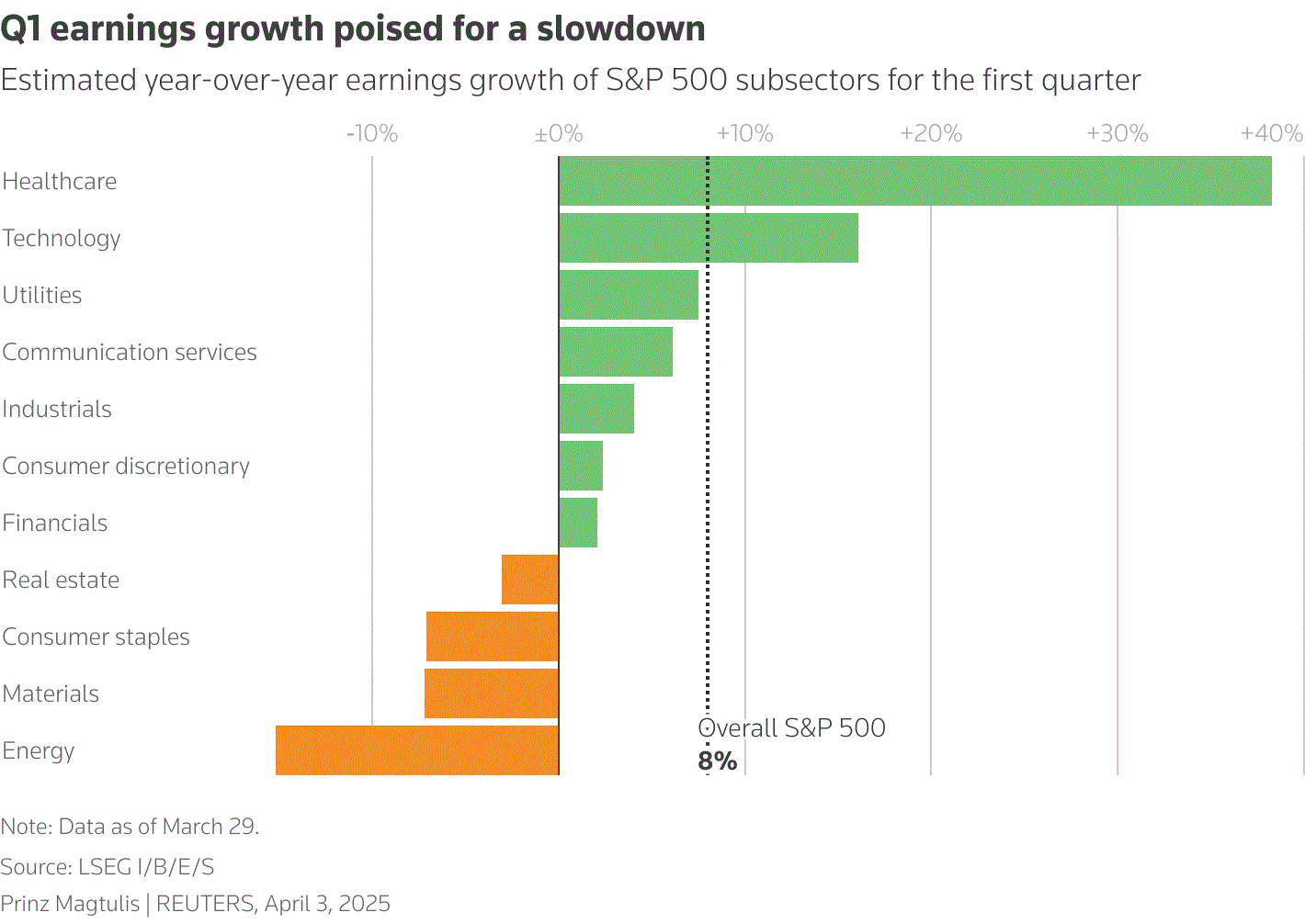 Các nhà đầu tư hy vọng thu nhập mạnh mẽ có thể khơi dậy sự nhiệt tình đối với thị trường cổ phiếu, sau khi S&P 500 trải qua qíu I/2025 tồi tệ nhất kể từ năm 2022.