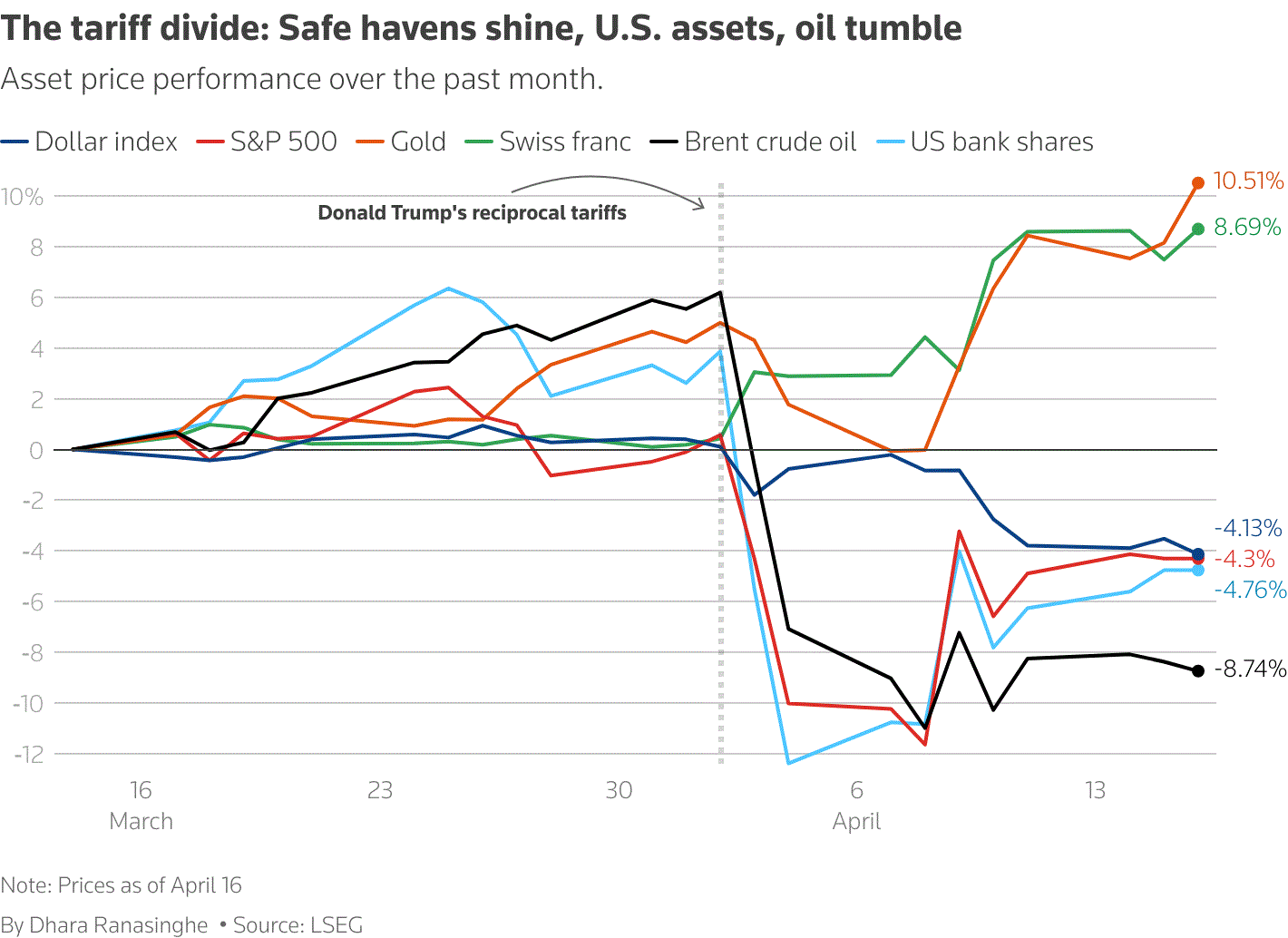 Tổng thống Mỹ Donald Trump đã hoãn áp dụng thuế quan đối ứng, nhưng vẫn tiếp tục thực hiện mức thuế 10% trên diện rộng. Các công ty Mỹ bắt đầu cảm thấy tác động đến chi phí đầu vào, trong khi PMI trong lĩnh vực dịch vụ của Canada chạm mức thấp nhất trong 5 năm trở lại đây…
