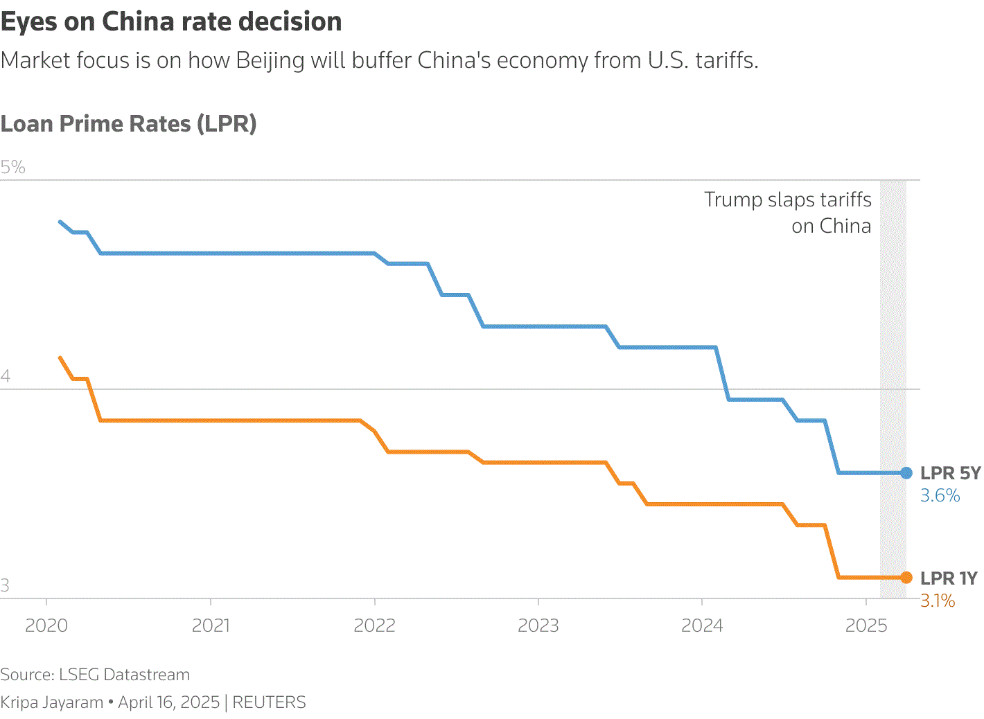 Trung Quốc sẽ họp về lãi suất vào thứ Hai (21/4) trong bối cảnh các nhà đầu tư đang chuẩn bị cho việc Bắc Kinh sẽ nới lỏng chính sách tiền tệ hơn nữa để thúc đẩy nền kinh tế tăng trưởng mạnh lên nhằm giảm thiểu tác động từ thuế quan của Mỹ tăng mạnh.