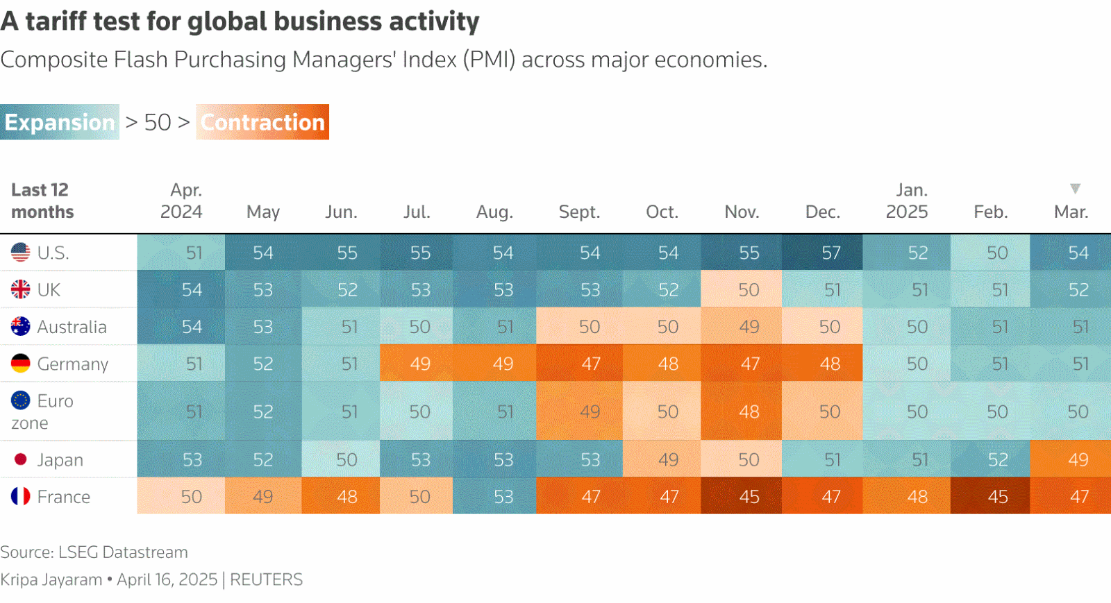 Các dữ liệu sơ bộ về chỉ số PMI tháng 4 cũng sẽ giúp thị trường cảm nhận được những tác động đầu tiên từ cuộc xung đột thuế quan.