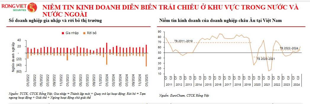 Trong tháng đầu tiên của năm 2025, số DN rời bỏ thị trường cao nhất từ trước đến nay (58,3 nghìn DN, tăng 8,2% so với cùng kỳ), số DN thành lập mới, vốn đăng ký mới và lao động đều giảm khoảng 21% so với cùng kỳ.