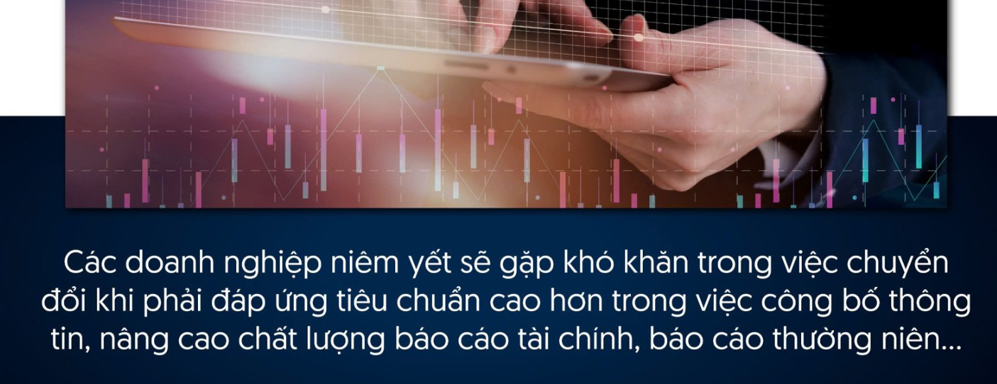 Tuy nhiên, như đã nói, thách thức và cơ hội cũng song hành với nhau. Các doanh nghiệp niêm yết sẽ gặp khó khăn trong việc chuyển đổi khi phải đáp ứng tiêu chuẩn cao hơn trong việc công bố thông tin, nâng cao chất lượng báo cáo tài chính, báo cáo thường niên… Dù có sự cải thiện, song cũng cần phải nhìn nhận rằng chất lượng công bố thông tin của doanh nghiệp Smallcap (vốn hóa nhỏ) vẫn rất kém.