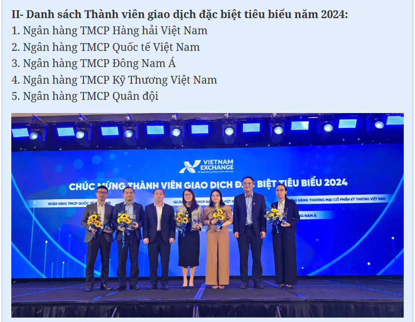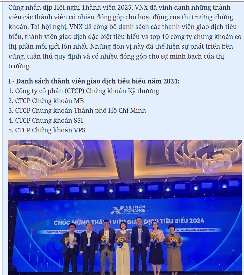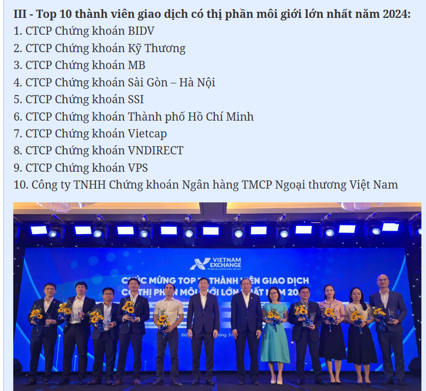 “Dù còn nhiều biến động, khó dự báo, với kết quả đã đạt được, TTCK Việt Nam kỳ vọng tiếp tục phát triển trong năm 2025. Năm nay, cơ quan quản lý, các Sở cũng đã đặt ra nhiều mục tiêu cụ thể như: đưa Hệ thống công nghệ thông tin mới (KRX) vào vận hành; nâng hạng TTCK; đưa các sản phẩm mới Hợp đồng tương lai chỉ số VN100, cải tiến chỉ số VN30...” - Chủ tịch VNX cho hay.