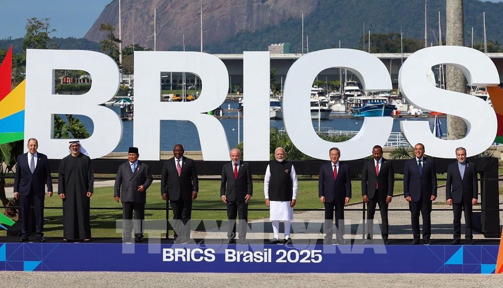 Các đại biểu chụp ảnh chung tại Hội nghị thượng đỉnh BRICS ở Rio de Janeiro, Brazil ngày 6/7/2025. Ảnh: ANI/TTXVN