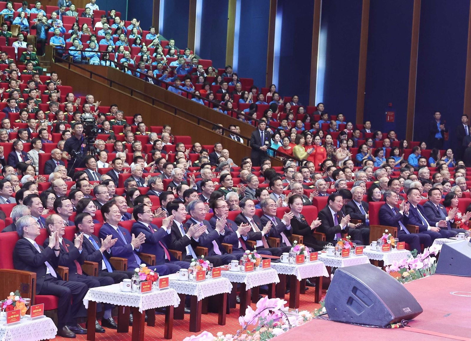 Tổng Bí thư Tô Lâm và các đồng chí lãnh đạo, nguyên lãnh đạo Đảng, Nhà nước cùng các đại biểu dự Lễ kỷ niệm 80 năm thành lập Chính phủ. Ảnh: Thống Nhất/TTXVN
