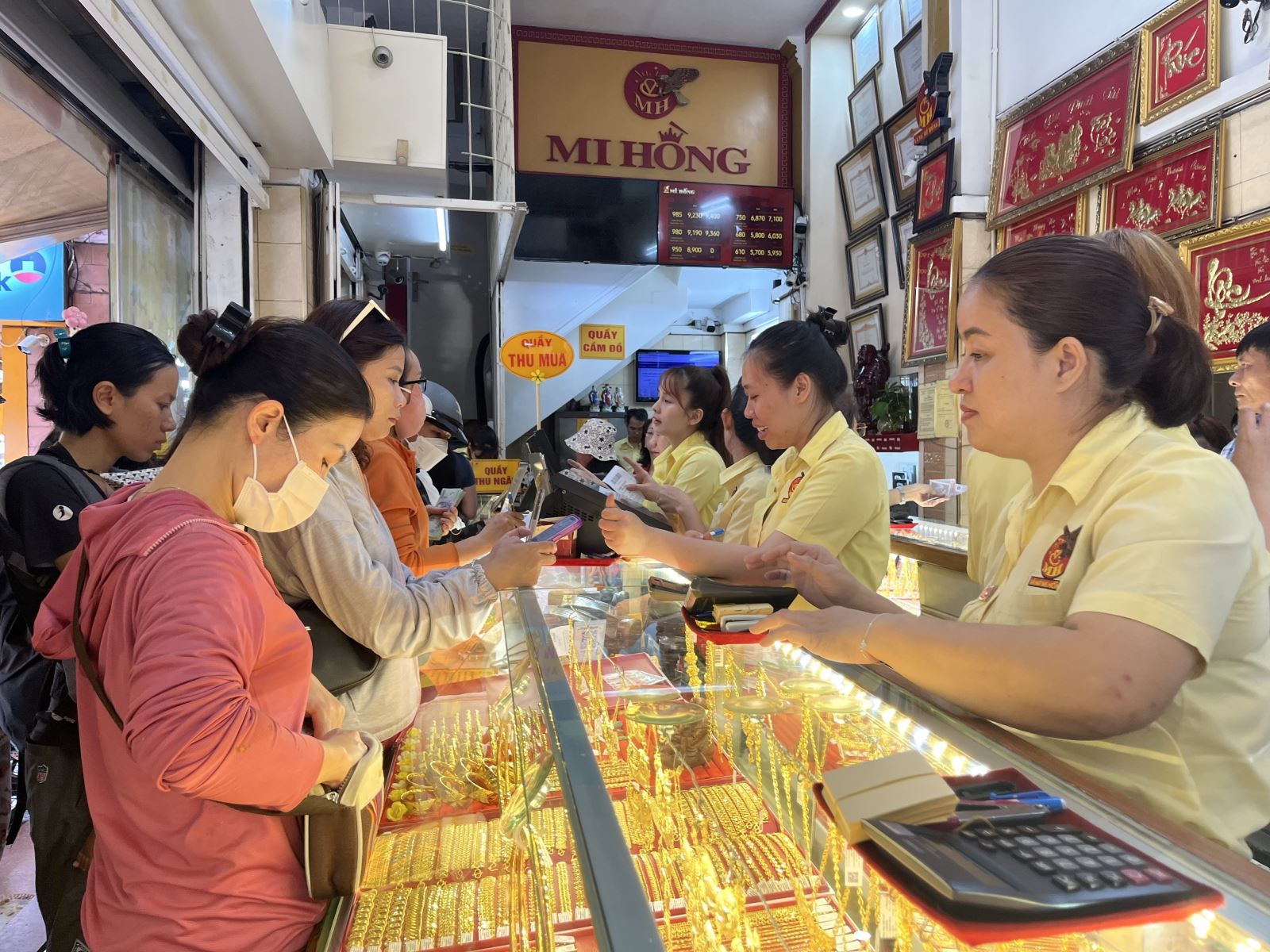 Nhiều người dân vẫn đổ xô mua vào bất chấp giá vàng đang neo ở mức cao. Ảnh: Hứa Chung/TTXVN